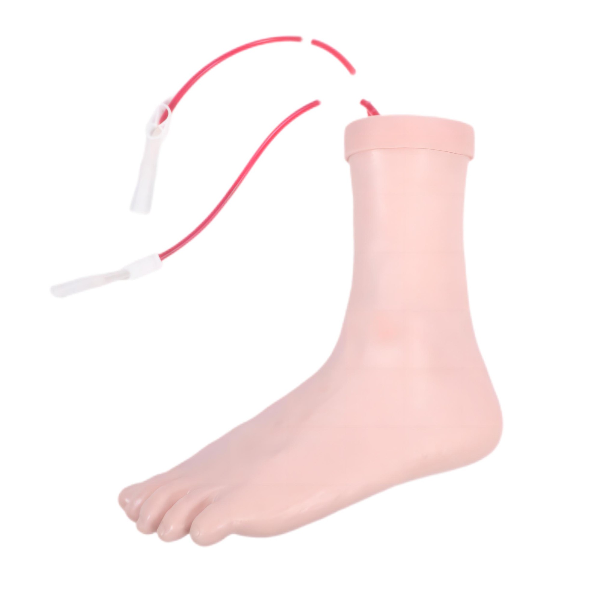 博友的下肢足部靜脈注射仿真模型極具教學實用性。模型呈現成人仿真下肢足部形態,配備完整靜脈血管系統,皮膚與血管材質柔韌、耐針刺,能承受多次練習。操作時,可真切體會針刺入血管的落空感,且輸液架外置血袋,方便將模擬血液注入血管,為靜脈注射教學提供逼真場景。