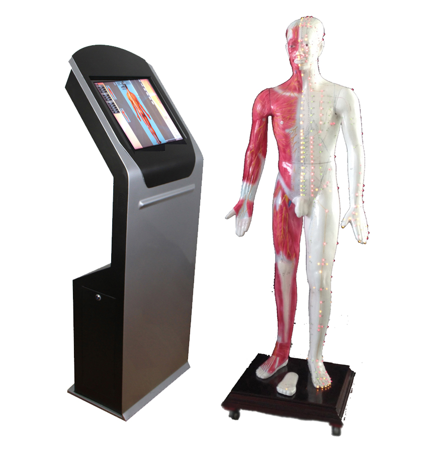 多媒體人體針灸穴位交互數字平臺是一種專業的輔助教學設備,該系統融計算機技術、電子控制技術、多媒體技術、腧穴理論于一體;軟件含“子午流注”。聲音、屏幕、人體模型同步控制經絡腧穴的信息;顯示十二經脈循環流注,經脈絡屬表里對經關系,特定穴的分布;加之屏幕表層、淺層、深層穴位解剖圖譜的配合,常見病的辯證施治、隨證選穴的查詢及處方輸出;為教與學帶來的更加豐富的內容,使工作更加輕松,教學內容更加豐富、更加生動,是現代中醫教學及校園網絡環境中不可缺少的中心設備。系統的科學性、先進性、實用性,使針灸、按摩醫學向電化教學邁進一步,是各大中醫院校、體育院校、針灸院系、康復理療中心、國際國內針灸培訓班上等級和教學的理想設備,受到國內外人士的好評。