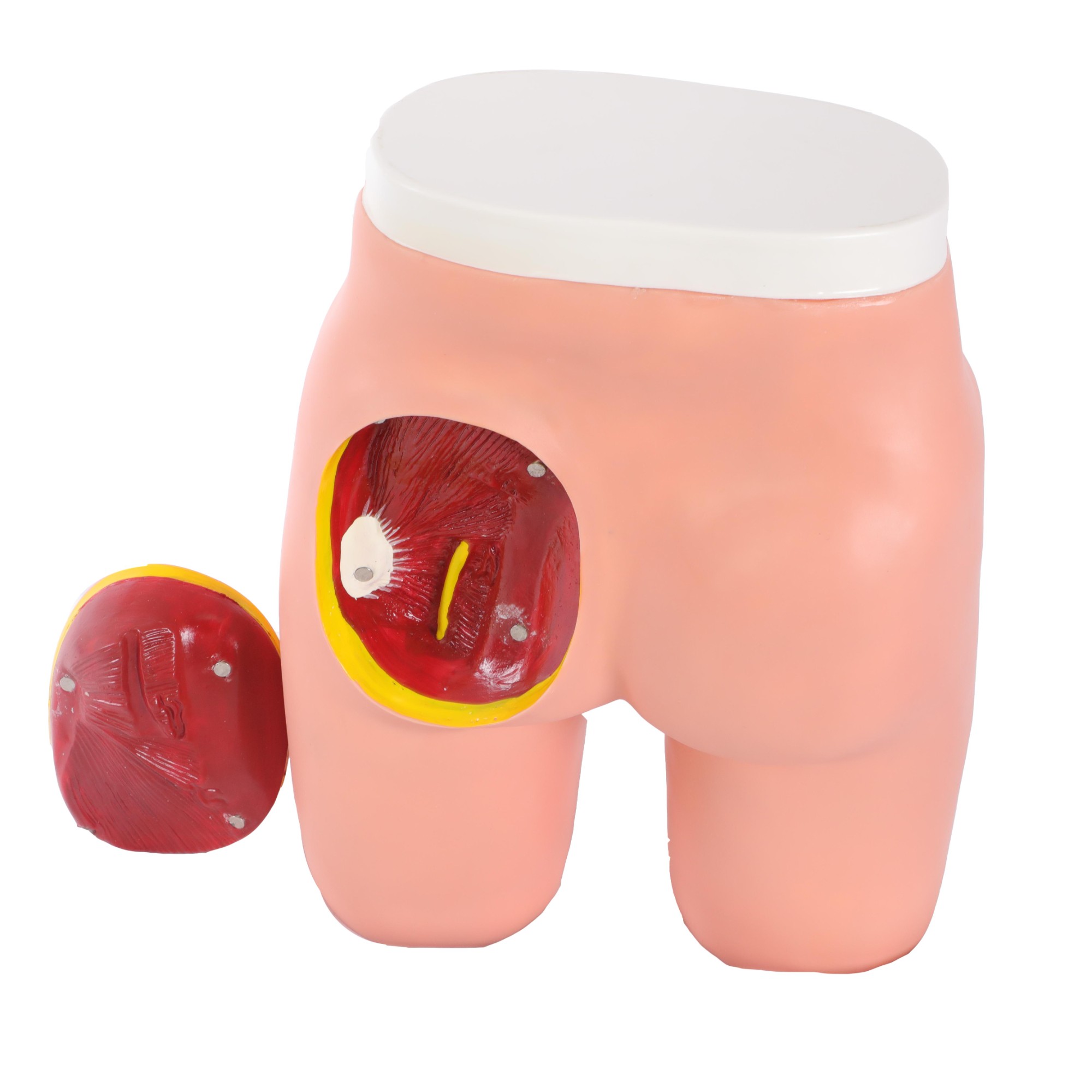 高級臀部肌肉注射與解剖結構模型功能卓越。其一,體表解剖結構精準,涵蓋近端股骨等關鍵部位,為注射奠基。其二,左臀部外上四分之一可拆卸,方便洞察內部肌肉、神經與血管構造。其三,支持背側、腹側、骨外側肌三種注射法訓練。且材料進口,手感真實、耐用無痕。