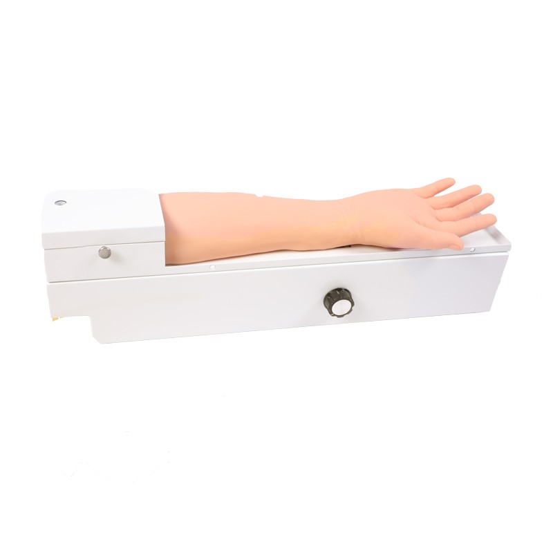 旋轉式靜脈穿刺及皮內注射手臂優勢顯著。功能上,手臂轉軸與方便支架搭配,操作便捷,不受場地束縛,隨時開啟教學訓練。其含八根血管,完整模擬人體靜脈系統,血液循環順暢,能精準呈現注射、輸液、抽血及三角肌注射等訓練的真實反應,進針落空感強。材料方面,皮膚、肌肉采用美國熱塑彈性材料,遵循歐洲標準,無毒環保。產品外觀、形態、膚色逼真,觸感真實,解剖位置精確到手指小靜脈,且皮膚可更換,兼具實用性與經濟性。