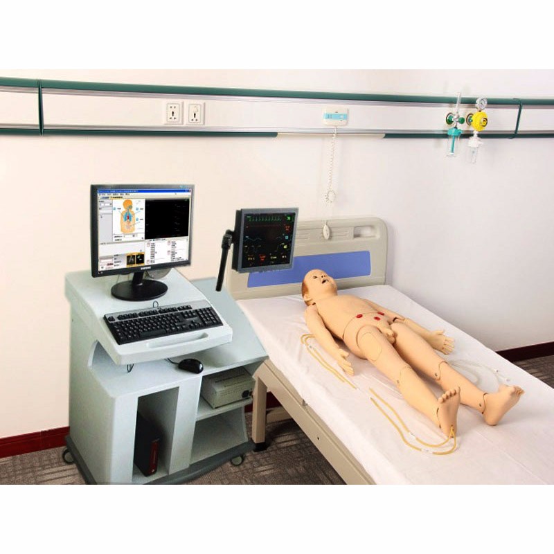 人機互動兒童ACLS訓(xùn)練模擬系統(tǒng),模擬真實的急救場景??烧鎸嵞M急診時兒童的相關(guān)體征,如瞳孔狀態(tài)、動脈搏動、心律、心肺聽診等,并可使用的臨床急救措施如除顫、起搏、CPR、藥物治療等。智能化模擬病人,會根據(jù)操作者的不同施救措施,表現(xiàn)出不同的生命體征變化。開放的病例編輯功能,教師可根據(jù)臨床實際或教學(xué)需要自主編輯所需要的急診病例,供學(xué)生訓(xùn)練使用。網(wǎng)絡(luò)交互功能可完成全體教學(xué),教師可隨時獲取學(xué)生的操作數(shù)據(jù),及時糾正或指導(dǎo)。