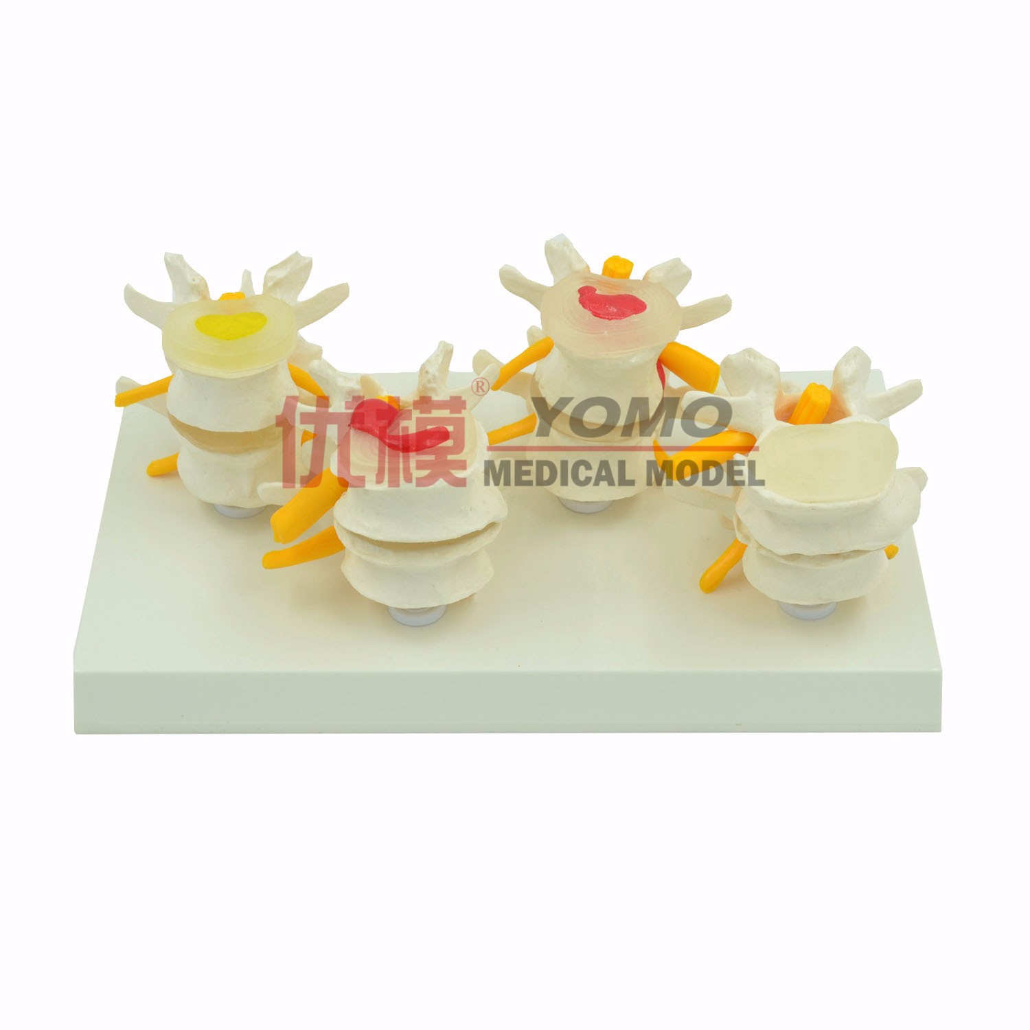 此款模型分為兩組 四個 正常比例大小的椎骨組成 包括一個正常椎體組合和三組病變椎體組合,展示正常椎體椎間盤和椎間盤突出的對比,以及椎骨和椎間盤退變,與的骨質(zhì)疏松癥帶來的骨壓縮和骨刺演示。