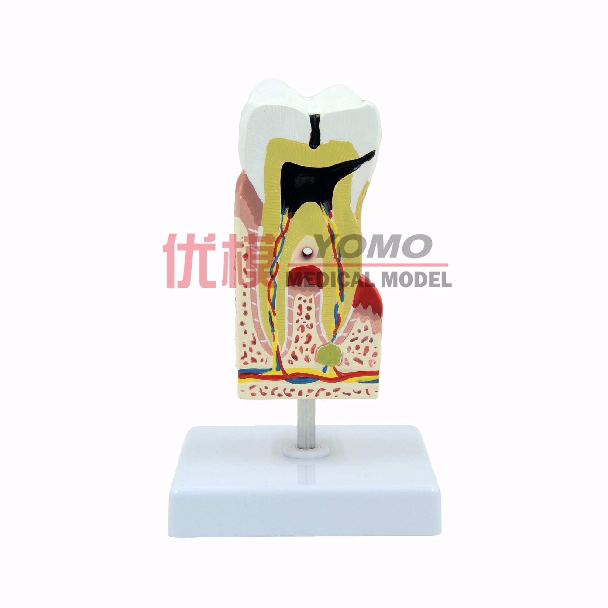 此款牙齒模型展示了髓腔內結構,齲齒病變,根尖周膿腫,牙齦出血及牙結石等口腔科常見病。