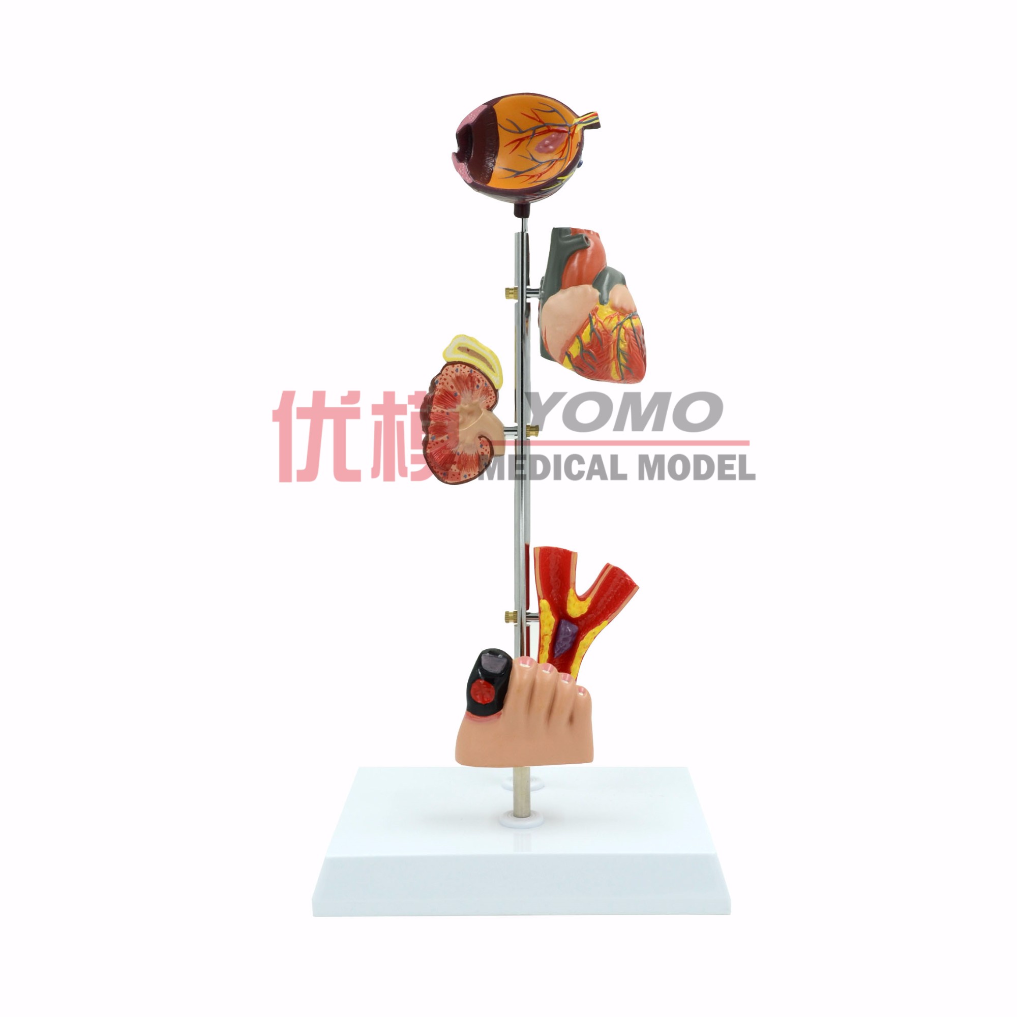 此款模型展示了可能的糖尿bing在人體組織器官的顯示狀態,糖尿bing性壞疽,血栓,糖尿bing性眼底動脈病變,糖尿bing性心臟bing等。