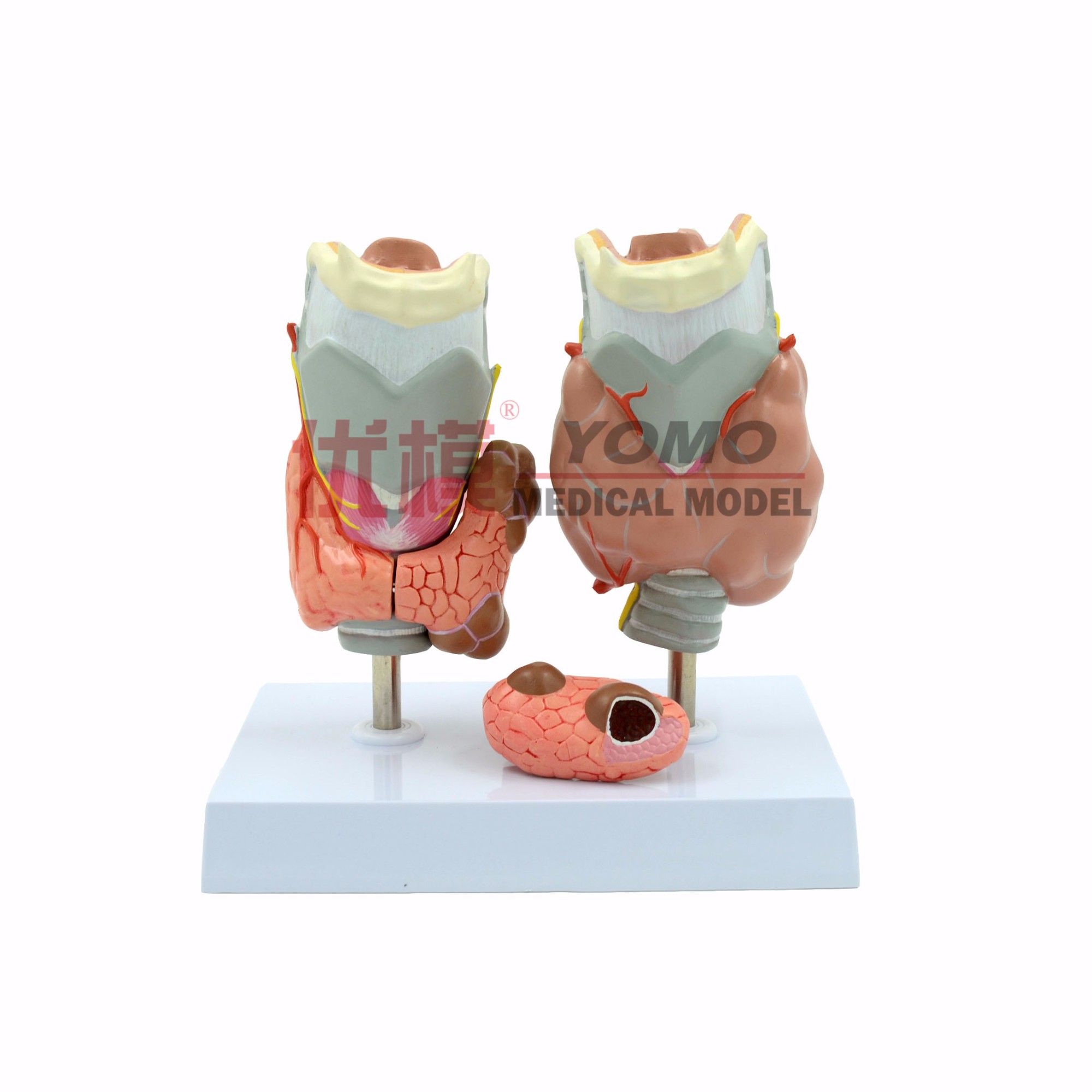 此款模型展示了甲狀腺基本結(jié)構(gòu)以及甲狀腺瘤,甲狀腺癌,格雷夫斯病等常見的甲狀腺病理形態(tài)。