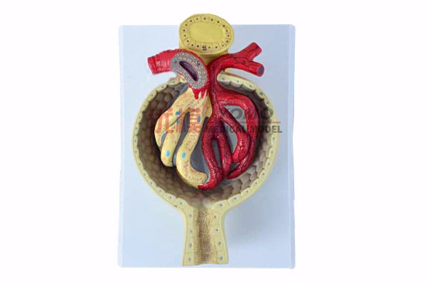 此模型為放大700倍的腎小球模型。腎小球為血液過濾器,腎小球毛細血管壁構成過濾膜。