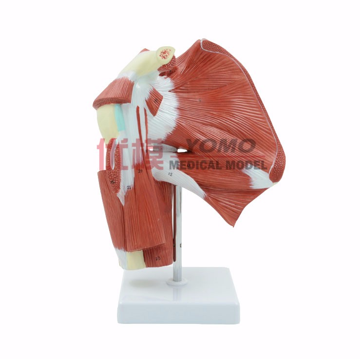 產品介紹:?此款模型詳細顯示了上肢肩胛處的淺表、深層肌肉、肌腱和骨骼形態。