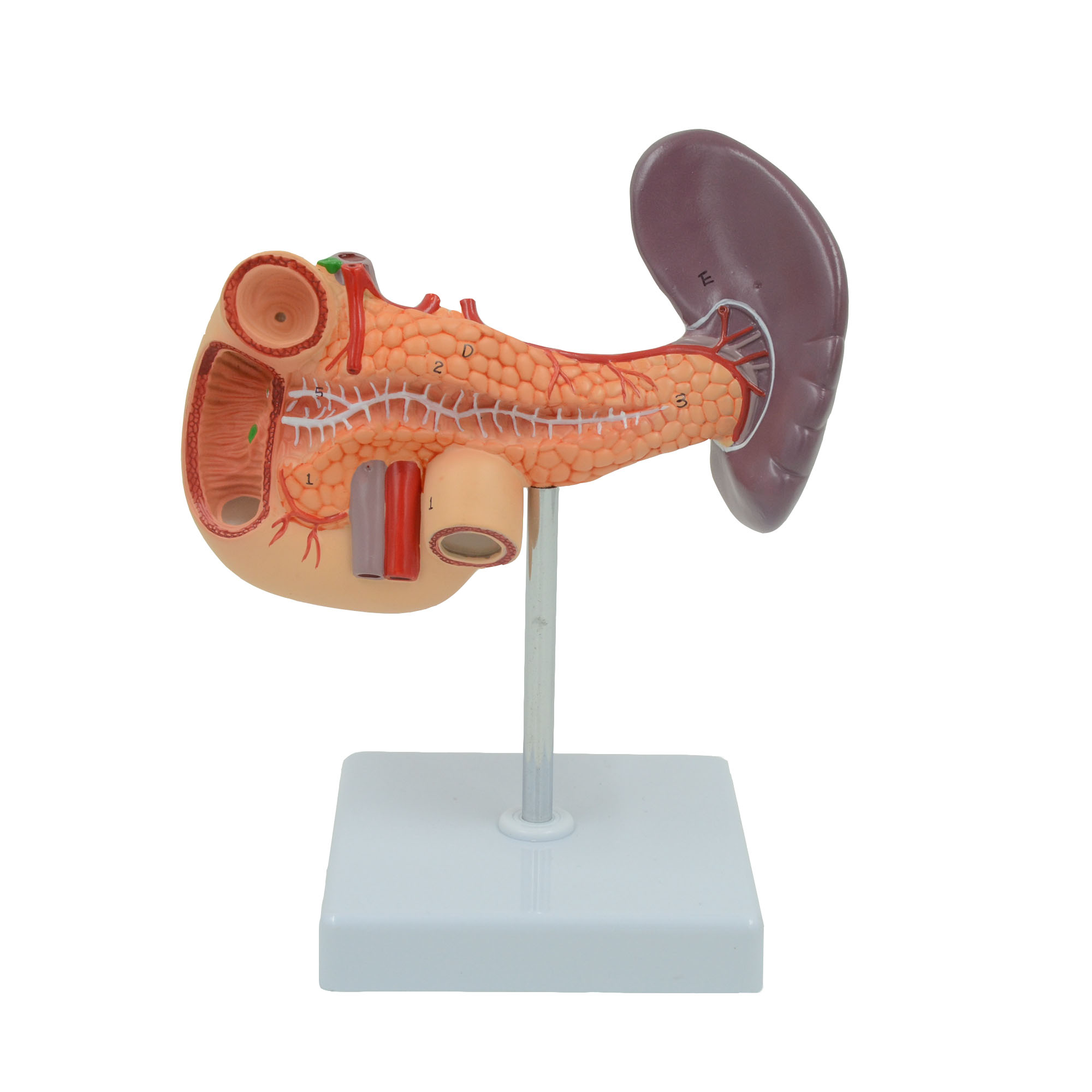 此模型顯示胰、十二指腸和脾的結構以及腹腔干、肝門靜脈等血管。由進口環保PVC制成,人工寫色,做工精良。