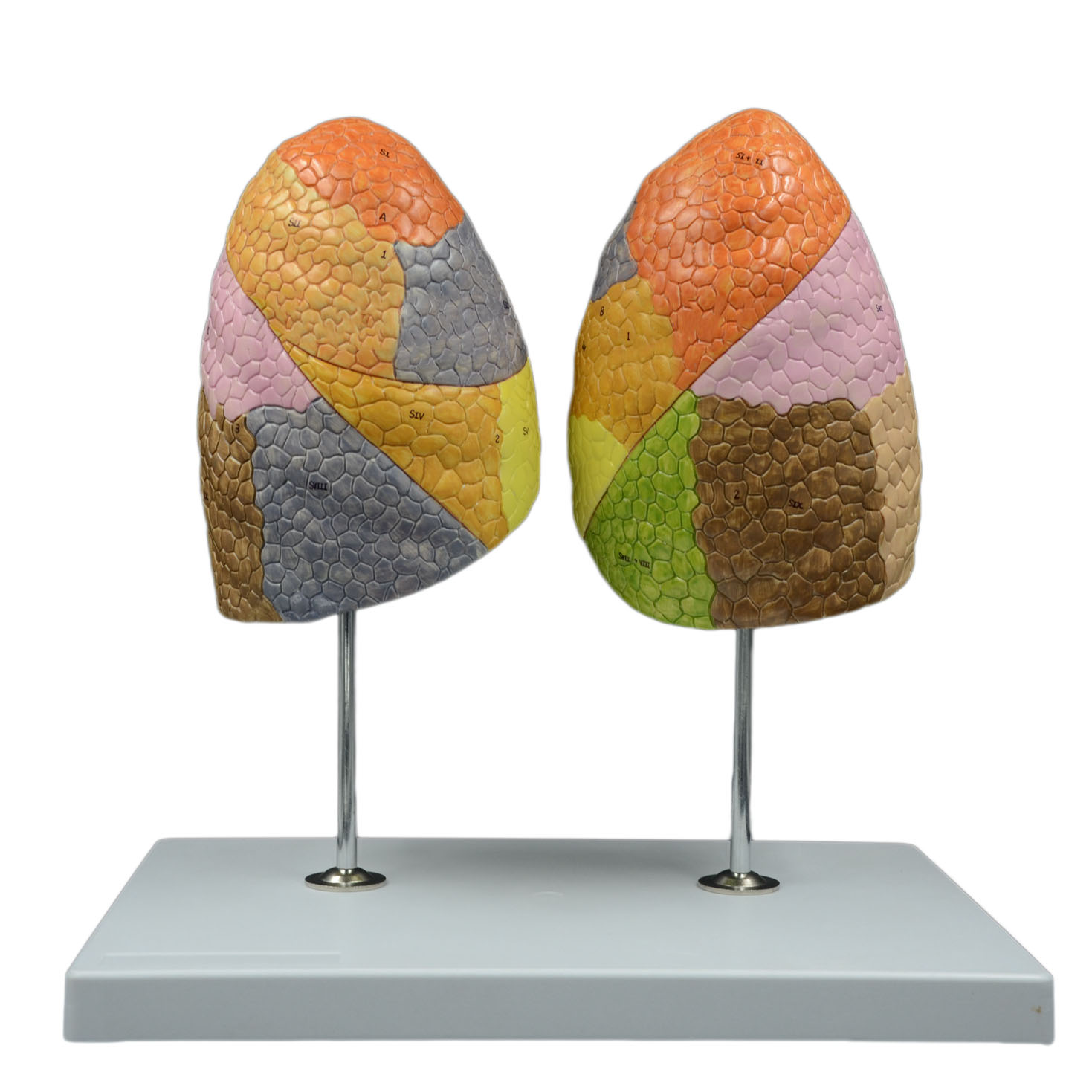 此款模型為自然大的人體左右肺模型,顯示了肺的10個肺段范圍,上葉,中葉,下葉的細節。