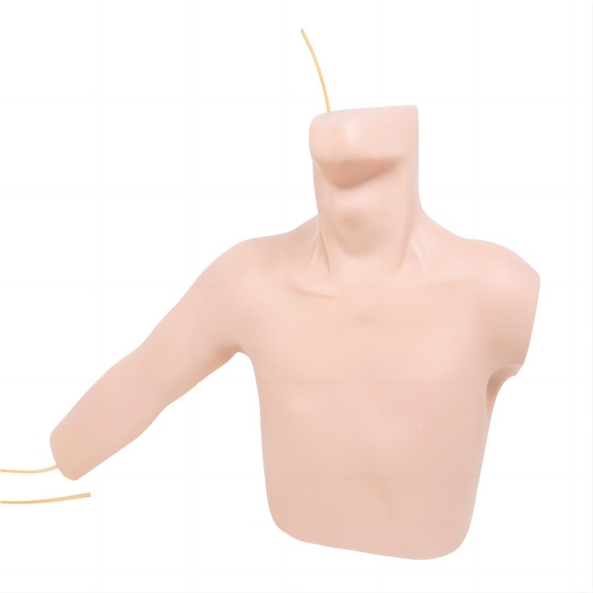 這款外周穿刺、中心靜脈穿刺插管模型專為醫學訓練精心打造。模型呈現成人上半身軀干至右側腕部,體表標志醒目,胸骨上切跡、胸鎖乳突肌等一應俱全,為精準穿刺定位提供便利。靜脈分布精準還原人體構造,涵蓋上腔靜脈、頸內靜脈等關鍵部位,不僅能開展鎖骨下、頸內靜脈穿刺,還可進行肘窩靜脈穿刺,甚至滿足心肌漂浮導管插管練習需求。皮膚與血管可更換,進針落空感明顯,真實感十足。其包裝規格為 78*24*54CM ,毛重 14KG ,便于收納與運輸。