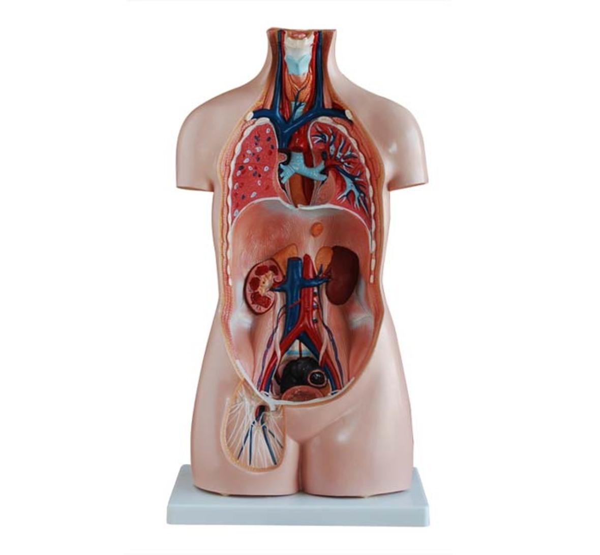 這個無性模型包括 20 個可解剖的部分:軀干、頭部、眼睛、大腦、帶有胸骨和肋骨附件的肺(2 部分)、心臟(2 部分)、胃(2 部分)、肝臟、脾臟、腎臟、 腸道(4 部分)、膀胱和椎骨脊神經(jīng)(2 部分)。露背。安裝在塑料底座上。