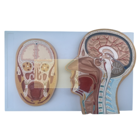 頭部和頸部的淺表和內部結構的真人大小表示。額葉和正中切片之間的比較提供了對頭部和頸部解剖結構的卓越理解。