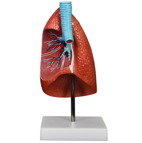 真人大小的切開肺模型顯示支氣管、動(dòng)脈、靜脈、淋巴結(jié)、支氣管通道和氣管分叉。