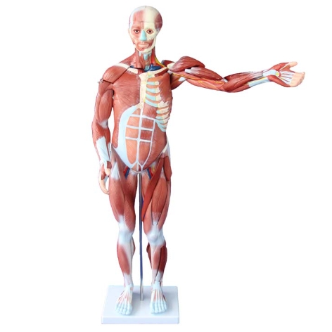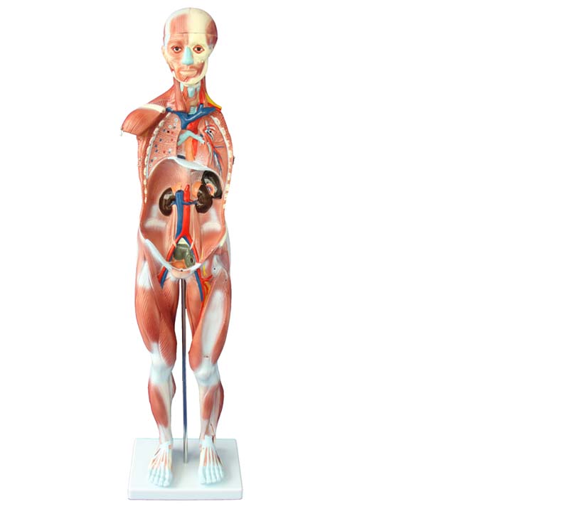 這個人體肌肉模型包括27個可解剖的部分:身體、切割顱骨、大腦(2部分)、胸腹壁、右臂、左臂(5部分)、腿(9部分)、肺(2 份)、心臟(2 份)、肝、胃和腸。材質:PVC尺寸:80CM。包裝:86x35x30cm,1pcs/箱,8kgs