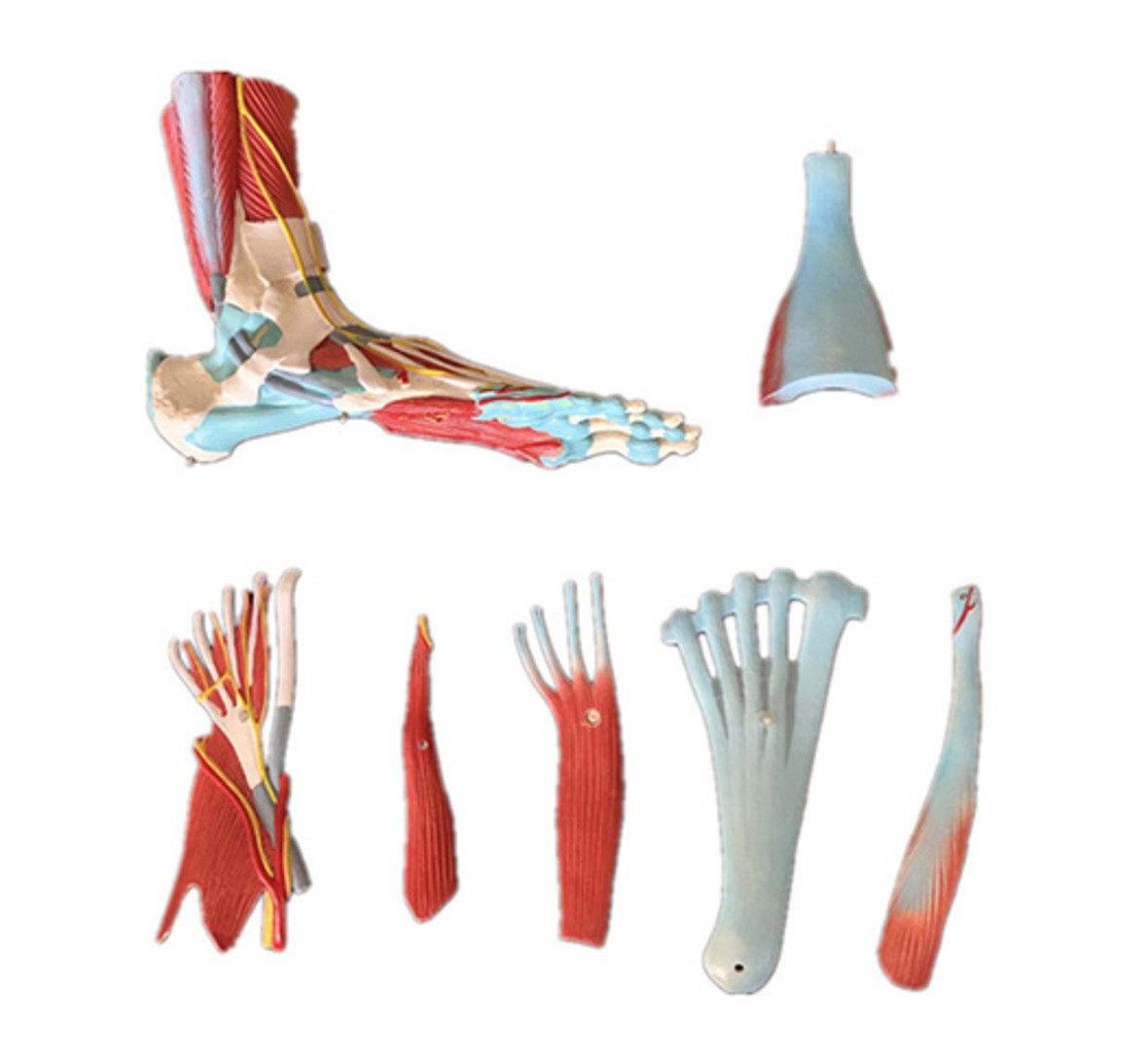 這個解剖學上詳細的足部和小腿模型可以拆卸成 7 個可拆卸部件,以便對足部和腳踝進行詳細研究。足部骨骼不僅包括骨骼,還包括足部的肌肉、肌腱、韌帶、神經、動脈和靜脈。材料:聚氯乙烯包裝:10 件/箱,55x35x33cm,12 公斤