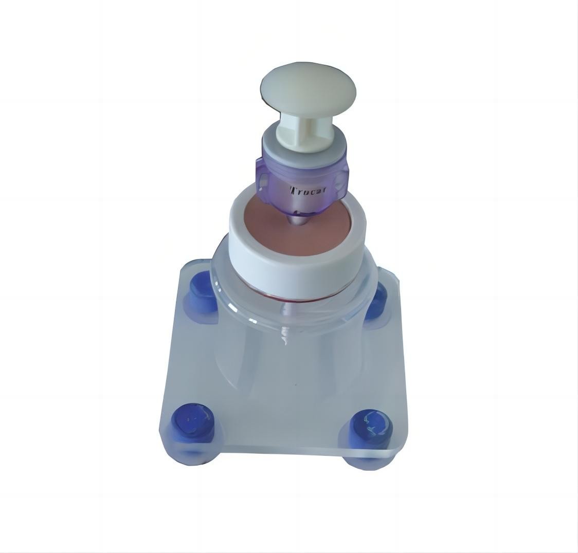 此新型訓練模型適用于腹壁套管針插入穿刺練習▲ 皮膚厚墊可容從Ver-res型到12mm的各種套管針插入。▲ 皮膚組織彈性好,針穿過皮膚時有逼真的阻力感。▲ 透明盒利于觀察全過程本公司長期供應耗材供用戶選購