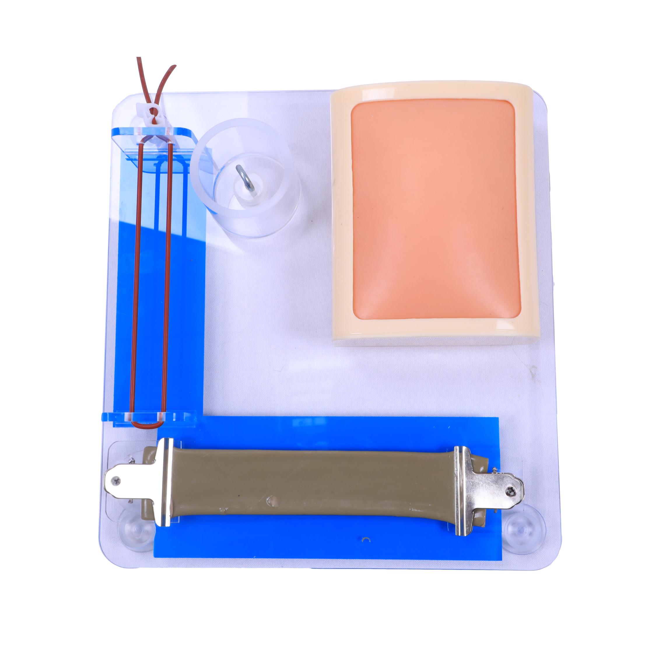 該模型可進行皮膚、血管、腸管、深部組織的切開、縫合、打結等技能操作訓練。