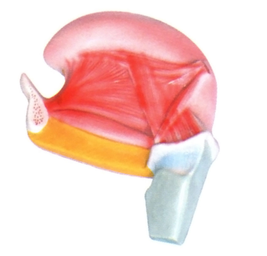 這是一對(duì)強(qiáng)有力的肌,起自下頜體后面的頦棘,肌纖維呈扇形向后上方分散,止于舌中線兩側(cè)。兩側(cè)頦舌肌同時(shí)收縮,