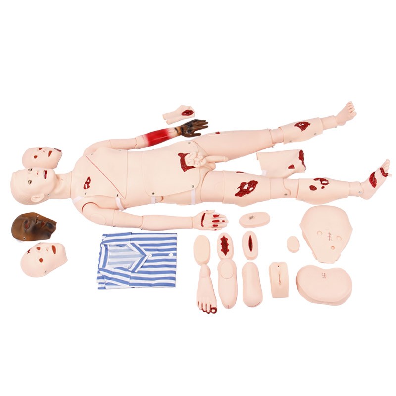 該產品在 BOU/H2000 基礎上重磅升級,新增創傷護理功能,極大增強現場處理及護理培訓的真實感。一方面,完整保留 BOU/H2000 原有豐富功能,涵蓋從基礎的洗頭、洗臉,到各類插管、穿刺、注射、導尿等醫療操作,還有胸腔解剖展示及整理護理內容;另一方面,新增大量創傷模塊,涉及面部、肢體多處燒傷、骨折、開放性傷口、槍彈傷、異物刺傷等多種創傷情形,各創傷部位附模擬出血點,全方位滿足復雜多樣的培訓需求