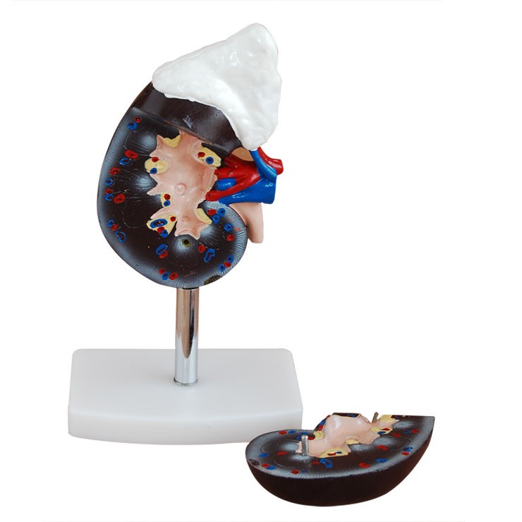 博友BOU-XC310-3腎解剖附腎上腺模型顯示腎的形態和結構:腎,腎上腺,腎管和腎上腺管,輸尿管的上部等,可拆分為2部件。 尺寸:自然大 材質:進口PVC材料 包裝:62×29×29cm,32件/箱,18kg