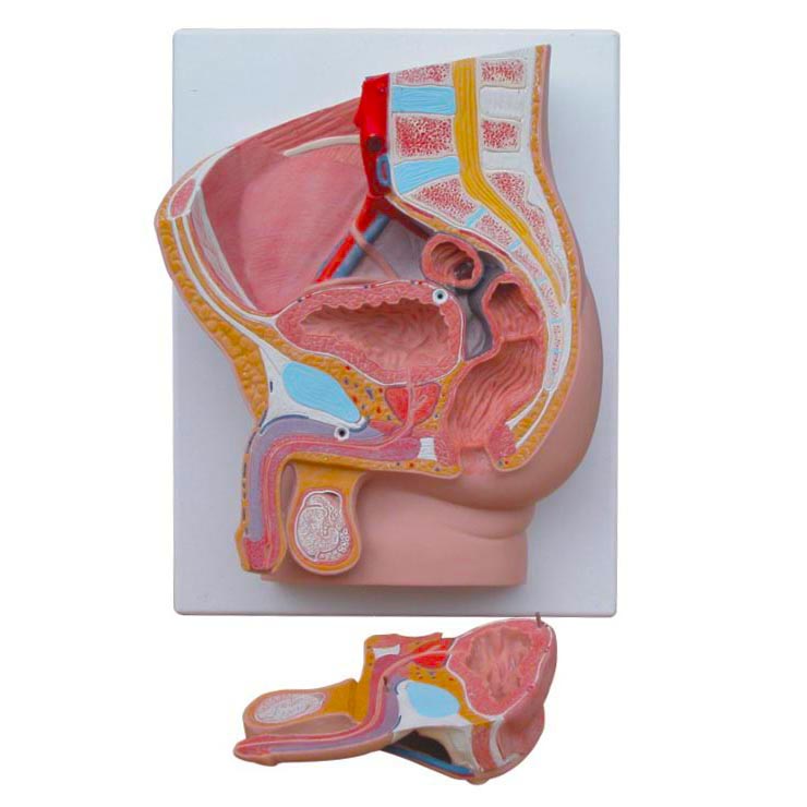 博友BOU-XC331B男性盆腔正中矢狀切面模型作矢狀切面,顯示男性生殖器官和膀胱、直腸在骨盆中的正常位置。
