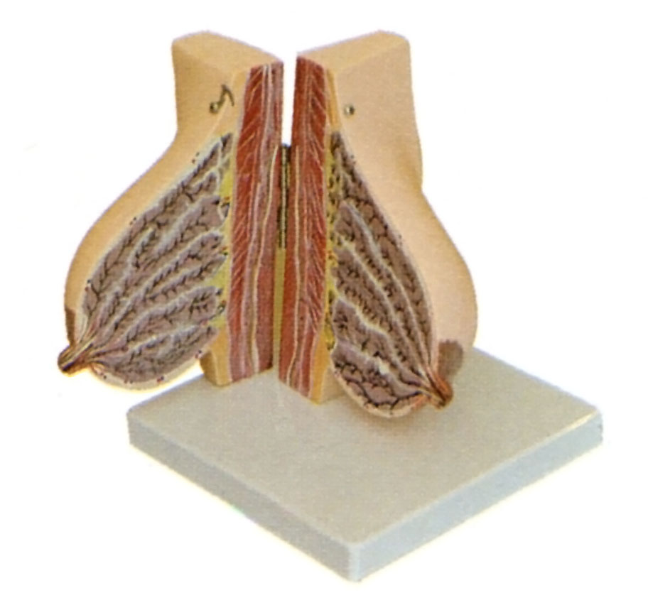 博友BM1153哺乳期女性乳房解剖模型由兩個部件組成,可活動打開,顯示哺乳期女性乳房剖面結構。