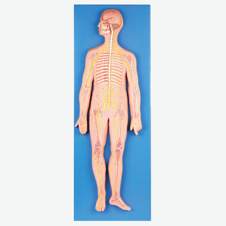 博友BM18101神經系統模型該模型顯示中樞神經腦和脊髓、周圍神經脊神經等結構,包括從中樞發出到身體各部的脊神經(臂從橈神經、尺神經、正中神經、腰叢股神經骶叢坐骨神經等)等結構,共有33個部位指示標志。