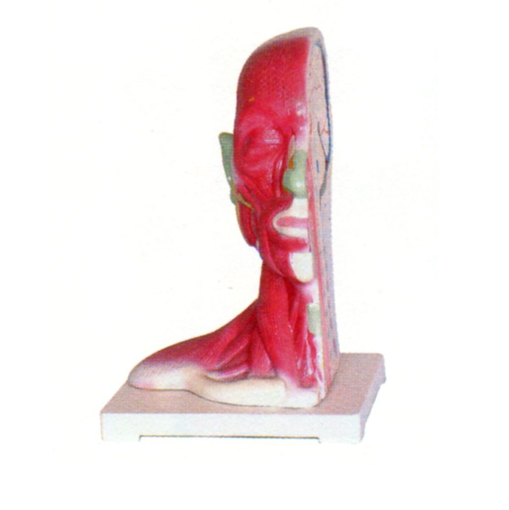 博友BM1270頭部、頸部局解模型展示人體頭頸部肌肉的形態,矢狀切面示腦、鼻腔、口腔、咽、喉、氣管、食管、椎管等結構。 模型尺寸:26×24×31cm