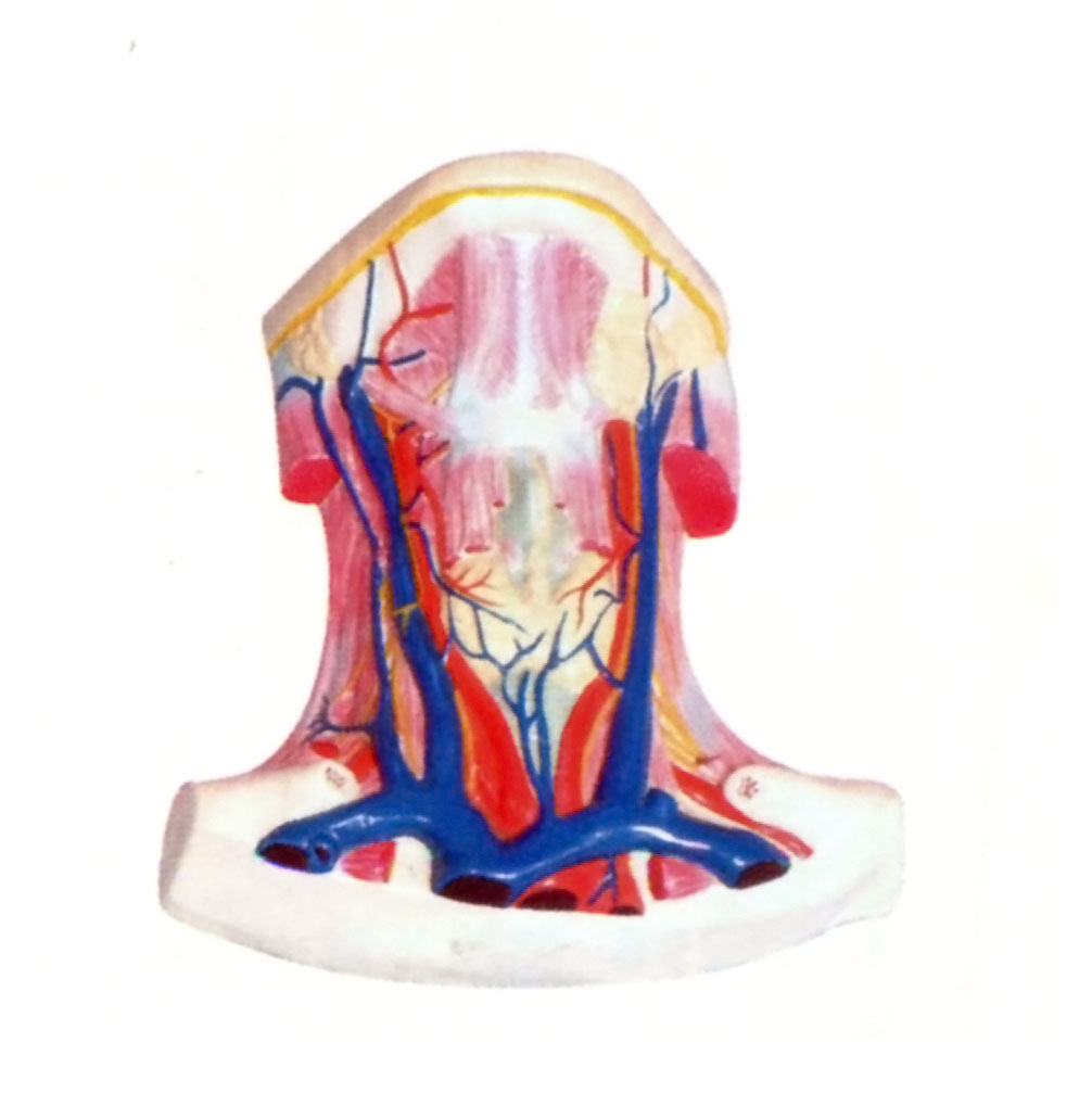 博友BM1281頸前肌局解顯示淺層M、A、V、N。 尺寸:22×21×10cm 博友醫學仿真模擬系列,高度仿真環保材質!