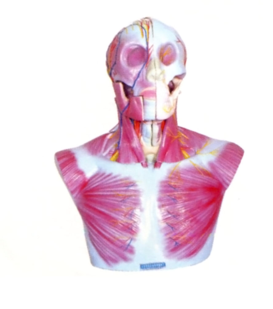 模型的頭頸部作正中矢狀切,示各器官的結(jié)構(gòu),左半側(cè)腦可拆下示腦N外形及進(jìn)出腦顱底的部位;在顯示頭頸部肌肉的基礎(chǔ)上示深淺血管和神經(jīng)的走向分布。