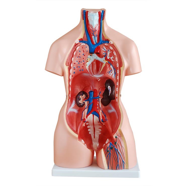 博友BOU-XC204兩性互換軀干模型85cm(23件)這是一款杰出的軀干模型,其特征是:脊椎露在外面,其中一段脊椎可拆下,一塊女性胸腔蓋和可互換的男女生殖器官,女性子宮中含有一胎兒。
