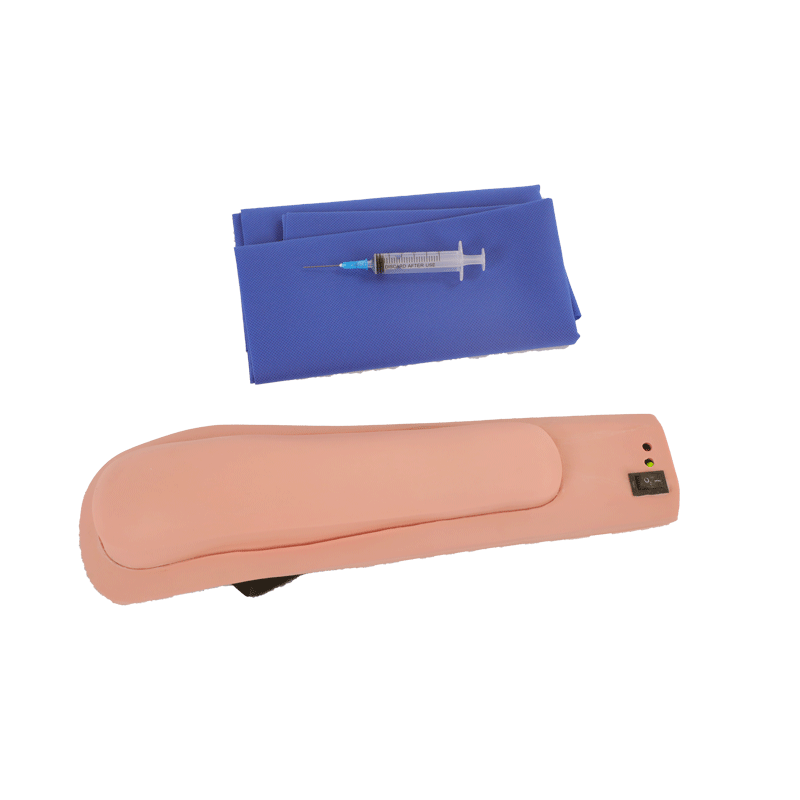 高級(jí)電子上臂肌肉注射訓(xùn)練模型特色鮮明。它可穿戴于學(xué)員肩膀,方便兩名學(xué)生分組練習(xí)。模擬成人肩膀上肢,精巧輕便,貼近真實(shí)場景,皮膚質(zhì)感逼真,進(jìn)針無痕。模型解剖精準(zhǔn),注射位置或深度有誤時(shí),紅燈閃爍并伴有電子報(bào)警。還能注入模擬液體排出,配備注射器、防水塵布?jí)|、鋁箱等附件助力教學(xué)。